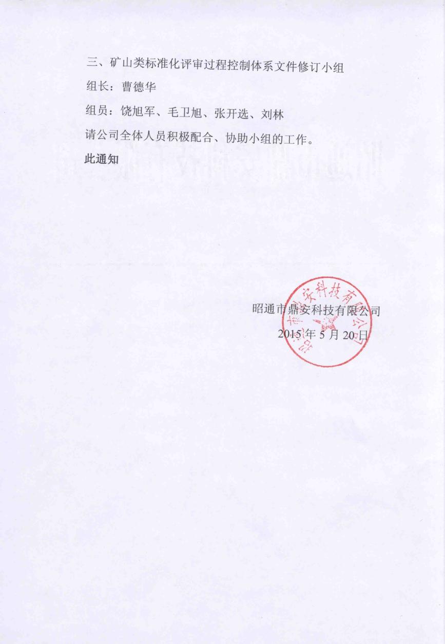 關于成立標準化過程控制體系文件修訂小組的通知