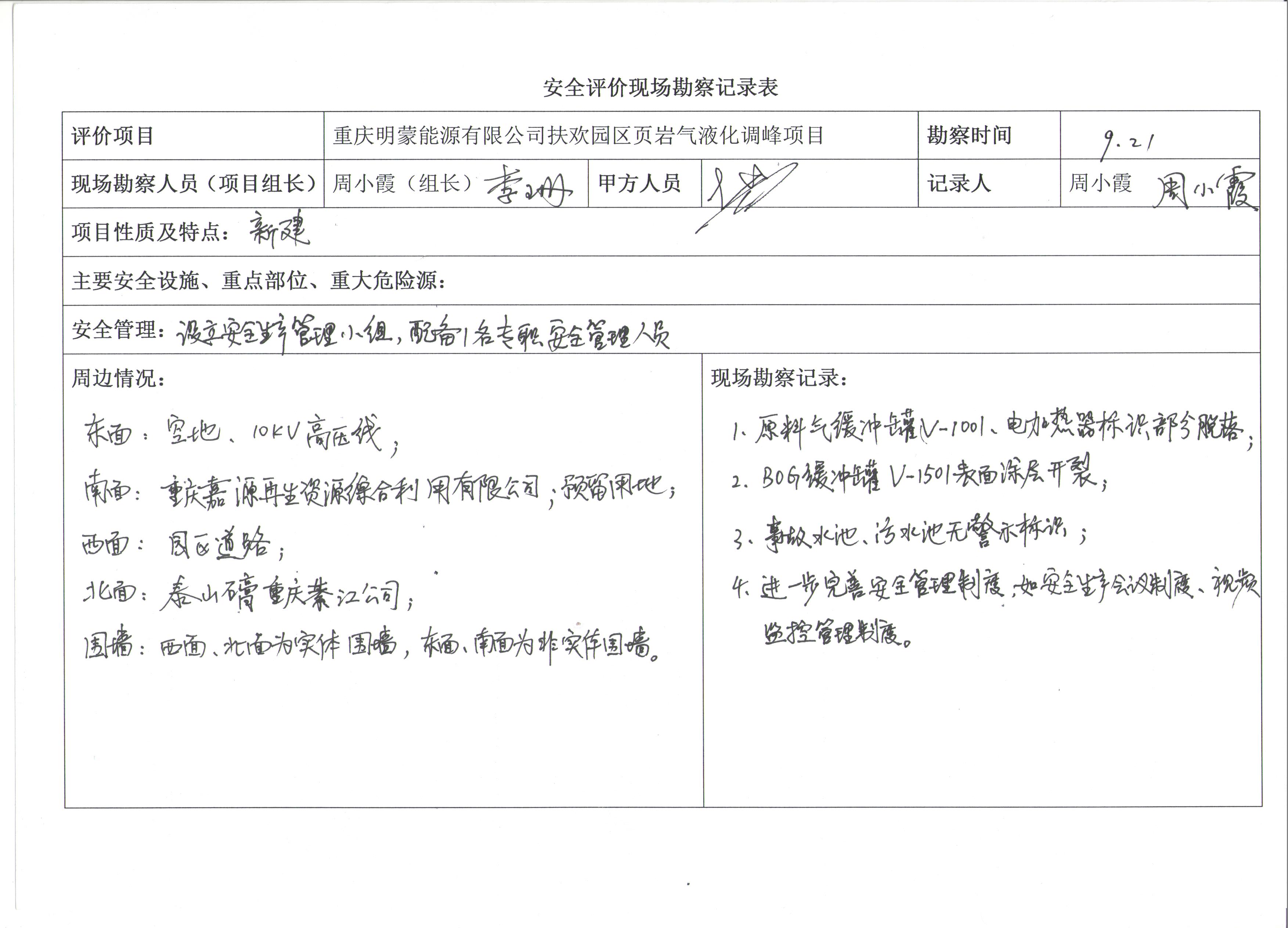 重慶明蒙能源有限公司扶歡園區(qū)頁巖氣液化調(diào)峰項(xiàng)目安全驗(yàn)收評(píng)價(jià)
