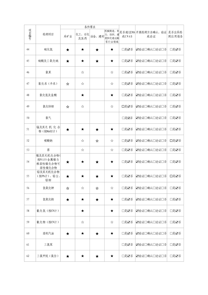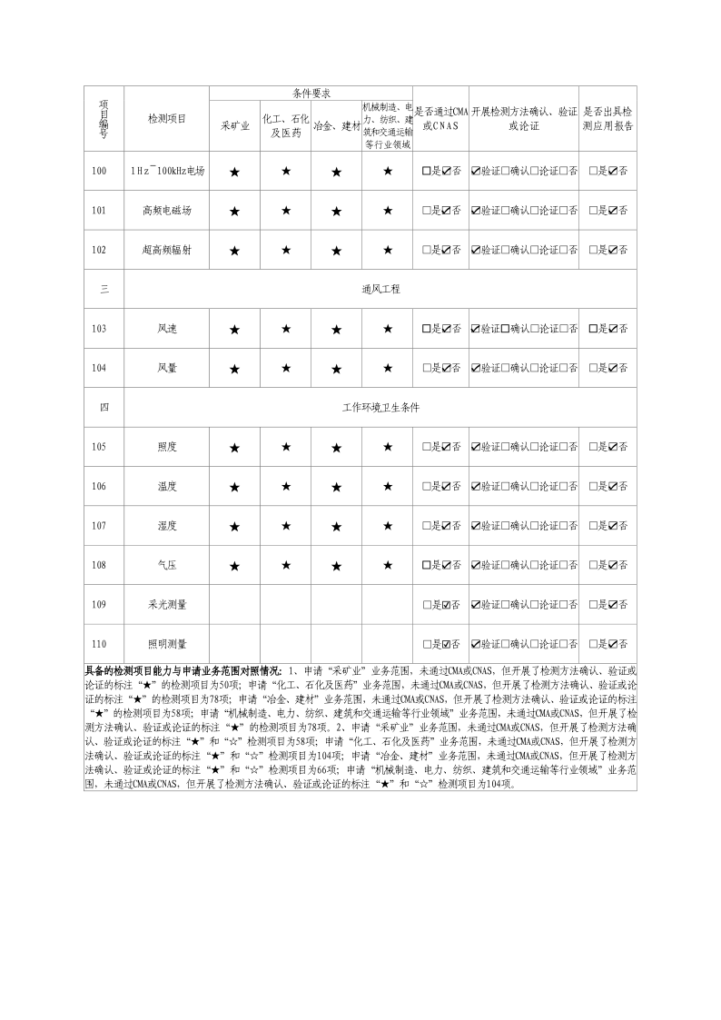 經(jīng)技術(shù)評(píng)審審核認(rèn)定的檢測(cè)項(xiàng)目(第一類業(yè)務(wù) 合計(jì)110項(xiàng))