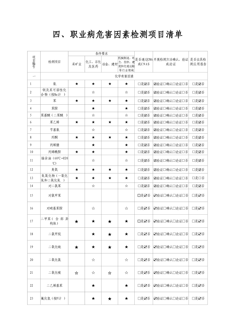 2024年職業(yè)衛(wèi)生技術(shù)服務(wù)機(jī)構(gòu)資質(zhì)證書及職業(yè)病危害因素檢測(cè)項(xiàng)目清單