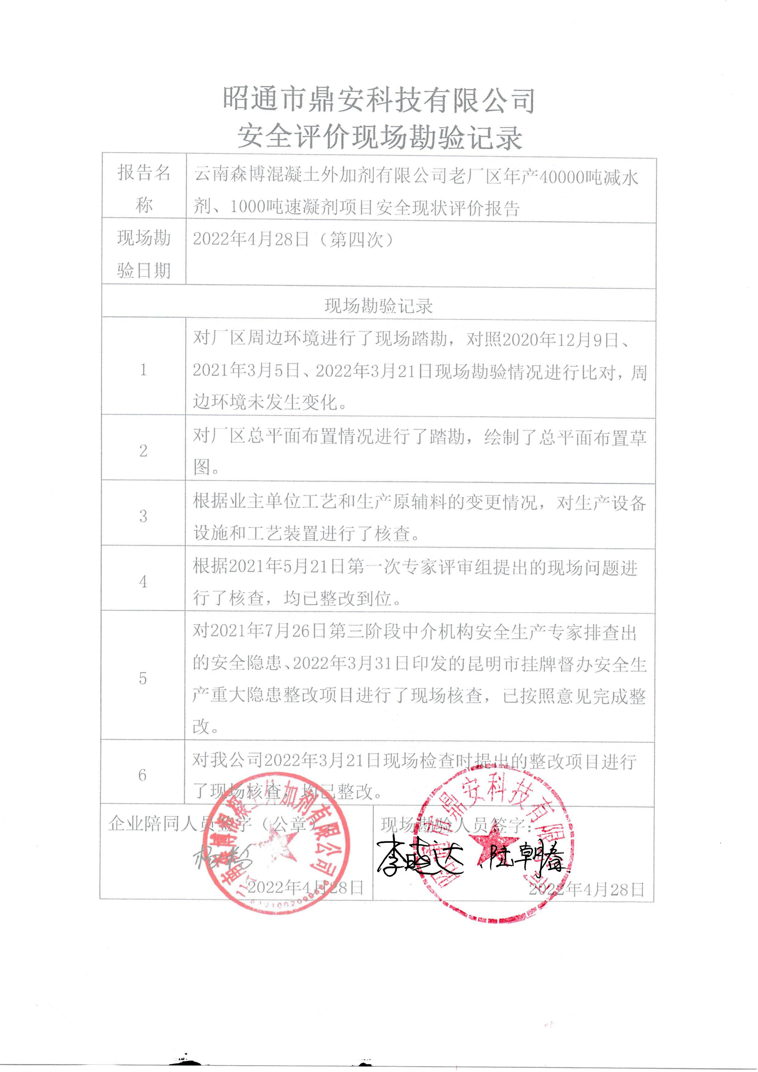 云南森博混凝土外加劑有限公司老廠區年產40000噸減水劑、1000噸速凝劑項目符合國家相關安全法律、法規、規范、標準的要求,具備安全生產條件。